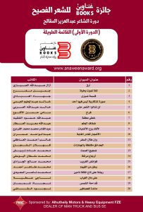وجاءت القائمة الطويلة للمرشحين بجائزة الشعر الفصيح (دورة الشاعر عبد العزيز المقالح) على النحو التالي: