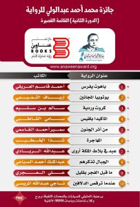 بينما تضمنت القائمة القصيرة للمرشحين للفوز بجائزة محمد أحمد عبدالولي للرواية: