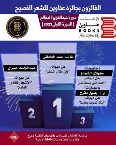 وهنأت الأمانة العامة لجوائز “عناوين بوكس” الثقافية، الفائزين في مجاليّ الرواية والشعر الفصيح، آملةً لمن وصلت أعمالهم إلى القائمة الطويلة بأن يسعدهم الحظ للفوز في الدورات القادمة.
