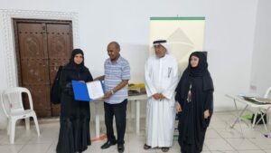د. محمد يوسف يتوسط المشاركين وحضور الورشةد. محمد يوسف خلال تكريم الطيب الحاج ترافقه خلود الجابري و هدى سيف