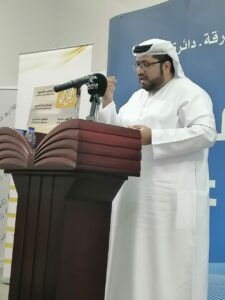 محمد عبدالله البريكي يتوسط الشعراء ومقدمهم بعد تكريمهم من اليمين رجب السيد و يوسف الحمود و دانة أبو محمود وسعيد المنصوري