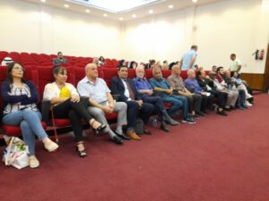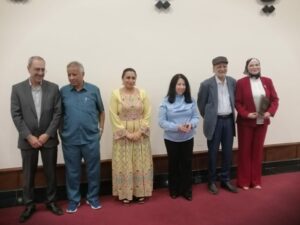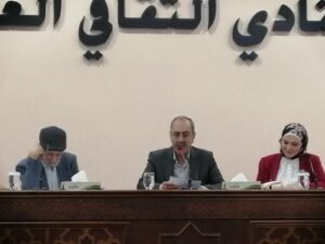 د. عمر عبدالعزيز مع المشاركين بعد تكريمهم من اليمين مارية طورمش و علي كنعان و د. تماضر فاتح و د. ريم عبيدات و إسلام أبوشكير