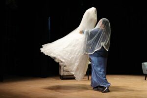 وتعكس المسرحية الجوانب والأبعاد النفسية والاجتماعية للمرأة الأم، حين يغادرها آخر الأبناء، لتبقى وحيدة تسكنها الهواجس، وليلة قبل الزواج يدور حوار بينها وبين ابنتها التي ستتزوج وتغادرها لبيت زوجها، حول الذكريات والتحديات التي واجهتهما، وواجهت الأسرة بحضور الأب في مواقف، وغيابه في مواقف أخرى، وفيما تستعد الفتاة للزواج تحدث مفاجأة للجمهور.