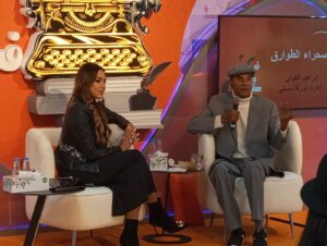 ضم ” الملتقى 2″ في معرض الشارقة الدولي للكتاب (42) الأربعاء 1 نوفمبر 2023 بحضور الشيخة بدور بنت سلطان القاسمي رئيسة مجلس إدارة هيئة الشارقة للكتاب جلسة حارية مع الروائي إبراهيم الكوني أدارتها الإعلامية لوركا سبيتي تحت عنوان “صحراء الطوارق”، واصفة الروائي الكوني بأنه ينبوع رغم ارتباط رواياته بالصحراء ، وبالفعل استطاعت المقدمة بأسلوبها المشوق تفجير ينبوع الفكر لدى الروائي وسط تفاعل الحضور.