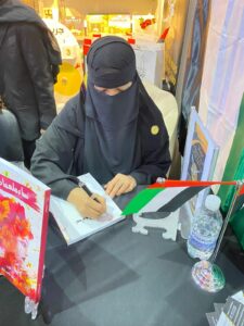 وفي جناح “دار شاهين للنشر ” وقعت كاتبات “نساء ملهمات” كتابهن الذي ضم الكاتبات على النحو التالي: سمية وضيفي من المغرب و نهى أبو جمعة من الأردن ، وعزة بسام من سوريا ، و د . فاطمة عبد الله الدربي من الإمارات وزينب سليم قاسم من الاردن و ثناء محمد غالب زين العابدين من سوريا و د . سندس العجرم من العراق و مريم كويس من المغرب وفوزية عبدالله باصهي (أم نوف) من اليمن و ندى محمد رضا فنري من سوريا و رنا يونس الزعبي من فلسطين و وداد أحمد بوشنين من الإمارات و بشرى الغفوري من المغرب و د.بدرية عبيد الظنحاني من الإمارات وعزة بسام جبّان من سوريا و أماني الفاتح عبد الرحمن من السودان و نشمية عبدالوهاب الفيلي من الإمارات و أمل موسى عبد اللطيف من مصر و ريفين نبيل دياب من سوريا و رانيا أمين عريان بباوي من مصر و كوثر صبري من سوريا و نزهة فوزي اليمني من سوريا و وئام موسى المسالمة من سوريا و لبنى محمد شاهين و مريم أحمد من الإمارات و نهى عبد الكريم أبو جمعة و ندى داود الشلودي من الأردن ومنار فارس ملاك من سوريا و إيمان الألوسي من العراق و نهى رجب من مصر و حياة خليفة محمد علي من السودان.