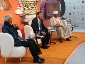 وفي جلسة حوارية بعنوان “إعادة تصور الهوية والثقافة الإفريقية في الأدب المعاصر” تحدث كل من وولي سوينكا الأديب النيجيري الحاصل على جائزة “نوبل” للآداب ، والشاعر السوداني عالم عباس محمد النور ، وأدار الجلسة الروائي والشاعر الموريتاني محمد ولد سالم.
