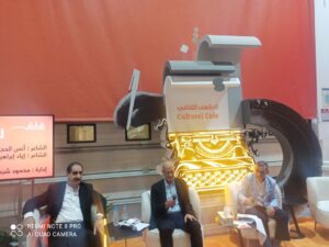 واصل “المقهى الثقافي” في المعرض نشاطه بتنظيم الأمسيات الشعرية والندوات ، حيث أحيا الشاعر د.أكرم جميل قنبس والشاعر رعد أمان أمسية شعرية قدم لها وأدارها محمد الجبوري ، تلتها أمسية للشاعر د. عبدالله أبو شميس و د. محمد الحوراني قدم لها وأدارها وائل الجشي.