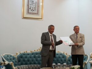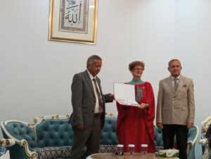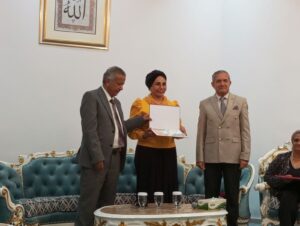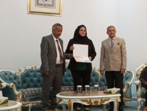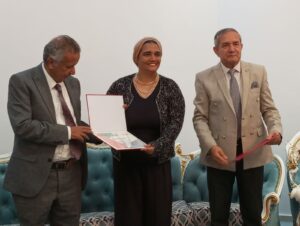 د. عمرعبدالعزيز وإلى يساره حليفة الشيمي