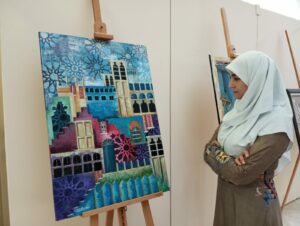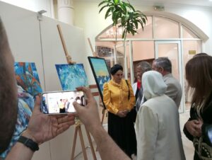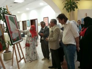 وأعقبت الافتتاح جلسة تحدث فيها د. عمر عبدالعزيز والفنان خليفة الشيمي، وتم تكريم الفنانين والفنانات المشاركين في المعرض.