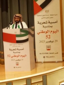 نظم مجلس الحيرة الأدبي الأربعاء 29 نوفمبر 2023 في قصر الثقافة بالشارقة فعالية احتفالية مشاركة في الاحتفالات باليوم الوطني52 لدولة الإمارات اللعربية المتحدة.
