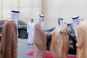 الشيخ د. سلطان القاسمي لدى وصوله في استقباله عبدالله العويس