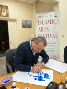 و أشرف الخطاط محمد النوري في “مركز الشارقة لفن الخط العربي والزخرفة” على ورشة ” صناعة المرقع “وهو عبارة عن مجموعة مخطوطات تجمع بطريقة معينة لتكون على شكل كتاب مجلّد حسب الطريقة التقليدية في الفنون الإسلامية، و كانت الورشة تفاعلية بمشاركة الحضور الذين تابعوا تجهيز غلاف المرقع والصفحات، ولصق ورق الإبرو، لتجهيز خلفية اللوحات الخطية.