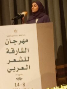 و بعده كان إلقاء الشاعرة الإماراتية أسماء الحمادي