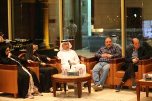 من اليمين محمود نور و عبدالغفار حسين وبلال البدور و محمد المر و إبراهيم الهاشميمن اليمين ناصر عراق محمد فراس عبو و د. صلاح القاسم و د. رفيعة غباش و د. حصة لوتاه