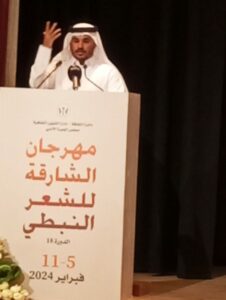 أحيا الشعراء عبد الرحمن الرئيسي (الإمارات)، وسارة البريكي (سلطنة عمان)، وفيصل عسكر المطيري (السعودية)، وسلطان راشد شرار (الإمارات)، وهلال الشرفات (الأردن)، وصلاح بامطرف (اليمن) في قصر الثقافة بالشارقة الثلاثاء 6 فبراير 2024 أمسية ضمن مهرجان “الشارقة للشعر النبطي” في دورته (ـ18) ،قدّم لها الإعلامي خليفة الفلاسي.