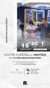 تنظم “ريبورتاج العقارية” الشركة الرائدة في مجال التطوير العقاري في الإمارات يومًا خاصًا للمبيعات في فندق “سوفيتيل – أبوظبي الكورنيش” يوم الأحد 18 فبراير 2024.