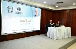 عبد الله إبراهيم وبروين حبيب خلال محاضرة “السردية العربية”