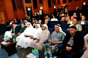 نخبة من الوجوه الثقافية الإماراتية والعربية وطلبة من مختلف الجامعات يتابعون محاضرة (السردية العربية) للدكتور عبد الله إبراهيم في مؤسسة العويس الثقافية