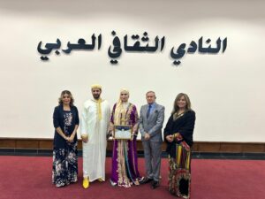 د. خليفة الشيمي يكرم كوثر الصباحي وفي الصورة من اليمين نزهة مفتاح و أحمد الملولي وبشرى إيجورك