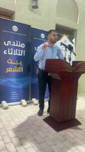 واختتم الأمسية الشاعر محمد الكامل بمجموعة قصائد لاقت استحسان الحضور بجودة التعبير والتصوير الشعري . يقول في قصيدته “حسناء”: