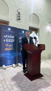 اليوم حيث يحتفلُ العالم بالشعر ويحتفي بالشعراء، و هل من مكانٍ وفيّ للمناسبة أكثر من هذا المكان، وهو الشاهد في كل زاويةٍ وركنٍ على أروعِ ما نطق به الشعراء، وها هي الجدران تشبعت من أحاسيس القوافي وعبقِ المفردات، وبهو هذه القاعة يردد صدى أصوات مئات الشعراء الذين صدحوا في أمسياتٍ من خيال، وهل أبهى من “بيت الشعر” من مكانٍ نحتفلُ فيه باليوم العالمي للشعر، لنضيءَ قناديلَ الإبداع ونقتفي أثرَ الفراشاتِ الفارَّة من صخبِ الأزمنة وضجيجِ الحياة، لنسافرَ على متنِ الأحلامِ الوردية صوبَ اللامكان حيث تنتفي الحاجة لحضورنا الجسدي، فهناك وفقط هناك. تتباهى الشمسُ بنفسها، وتزهو القصيدة بحروفٍها المشعة، ويفترشُ الشعراء المدى، ليسكبوا من قواريرهم عطرَ مشاعرِهم وأحاسيسهم، ويخرجون من قمقمهم ماردَ الخيال الذي يُحيلُ المدادَ ذهباً، والمفرداتِ ماساتٍ ولآلئ، ويسرحونَ مع الغمامِ كطيورِ الفردوسِ ليصنعوا المعجزة..