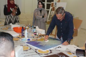 حضر الورش وشارك فيها عدد من الفنانين التشكيليين والخطاطين والمتدربين، وتضاف هذه الورش إلى النشاط الفني العريق للفنان د. خليفة الشيمي.