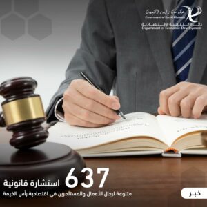 قدمت دائرة التنمية الاقتصادية في رأس الخيمة 637 استشارة قانونية مجانية لفئة رجال الأعمال والمستثمرين خلال الربع الأول لعام 2024. صرح بذلك مكتب الشؤون القانونية في في الدائرة من خلال موقعها الإلكتروني أو عبر الحضور الشخصي، كما قام المكتب من خلال “لجنة تظلمات المتعاملين” بالفصل في 389 تظلم من إجراءات الرقابة والحماية التجارية وتظلمات متنوعة أخرى. أما بالنسبة لعقود الشركات التجارية المصدقة من قبله فقد وصل عددها إلى 176 عقد، و قام المكتب كذلك بالرد بالإفادة على 552 طلب قضائي للجهات القضائية المحلية والاتحادية المختلفة، ومعالجة الشكاوى الواردة بنسبة 100%، والتي بلغ إجمالي عددها 44 شكوى، ونشر 9 نصائح قانونية عن طريق منصات مواقع التواصل الاجتماعي الرسمية للدائرة.