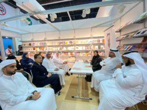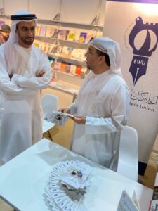 د. سلطان العميمي في جناح اتحاد كنتاب وأدباء الإمارات
