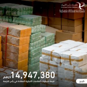 عالجت دائرة التنمية الاقتصادية في رأس الخيمة أربع عشرة شكوى لعلامات تجارية عالمية خلال الربع الأول من العام 2024 ، وذلك في إطار تعزيز البيئة الاقتصادية الآمنة في الإمارة وحماية العلامات التجارية من الانتهاك والمنتجات المقلدة، حيث بلغ عدد المنتجات المقلدة التي ضُبِطَت وصُودِرَت 5212 قطعة، ما يعادل بقيمتها الأصلية 14,947,380 درهمًا.