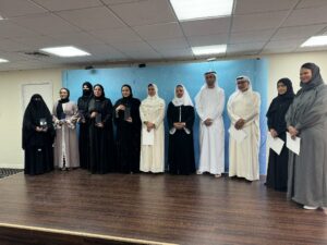د. سلطان العميمي وإبراهيم الهاشمي وعدد من الأديبات في لقطة جماعية