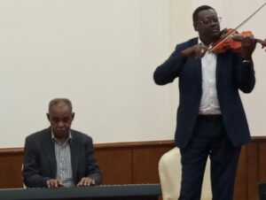 وتخللت الأمسية فقرات موسيقية نفذها كل من عازف الكمان البارع لؤي عبد العزيز والموسيقار سعد الدين الطيب تعطى فكرة وملامح عامة عن تطبيقات السلم الخماسي السوداني لدى عدد من الفنانين السودانيين في فترات زمنية متعددة، منها مقطوعة دوبيت للموسيقار حسن خواض، وقائد الأسطول لرائد الأغنية السودانية سرور، وفتنت بيه للفنان إبراهيم الكاشف، والملهمة للفنان التاج مصطفى، والفراش الحائر للفنان عثمان حسين، ومقطوعة الروج الخضراء للموسيقار برعي دفع الله، وياما بقيت حيران للفنان زيدان، والطير المهاجر وذات الشامة لمحمد وردي، وانتي مهما تغيبي عني لمحمد الامين، وعزة في هواك للفنان الرائد خليل فرح.