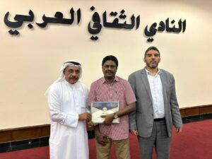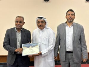 علي المغني يكرم د. محمد عبدالله الريّح وفي الصورة محمد ولد سالم