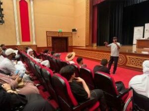 وتعرف المشاركون ‘لى مكونات خشبة المسرح وأبعادها الهندسية، ودلالات تقسيمة مساحة الأداء التمثيلي، كما استكشفوا الوسائل التقنية التي تتضمنها كأجهزة الصوت والإضاءة والتلوين وسواها.