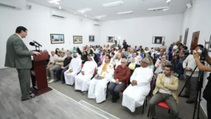 وختم الأمسية مقدمها بدعوة مدير “بيت الشعر” في الشارقة لتكريم الشعراء ،حيث التقط معهم صورة تذكارية.