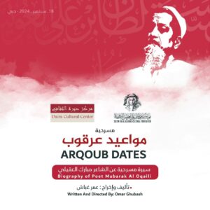 دبي – “البعد المفتوح”:تنظم مؤسسة سلطان بن علي العويس الثقافية في دبي عرضاً مسرحياً بعنوان ” مواعيد عرقوب”، وهو سيرة مسرحية مونودرامية عن حياة الشاعر مبارك العقيلي من تأليف وإخراج الفنان عمر غباش ومن إنتاج “مركز ديرة الثقافي” بدبي، وذلك الساعة التاسعة من مساء الأربعاء 18 سبتمبر 2024.يقدم الفنان عمر غباش في مسرحيته حياة الشاعر مبارك العقيلي الذي ولد في منطقة الرياض في السعودية وتنقل بين السعودية والعراق ودبي وعمان والبحرين حتى استقر به المقام في دبي. وقد عاش الشاعر ما بين 1875م إلى 1955. وعاصر الوجود العثماني في منطقة الاحساء في السعودية والانتداب البريطاني في منطقة الخليج. كما عاصر العديد من الشخصيات في المنطقة وتواصل مع العديد من المثقفين. وكان يتميز بجزالة شعره سواءً باللغة العربية الفصحى أو في شعره النبطي. وكان له السبق في كتابة أول مسرحية شعرية في الجزيرة العربية وأول قصة قصيرة. وتستعرض المسرحية رحلة حياته منذ صغره ومن ثم كل مراحل حياته.ويعد هذا العرض الأول لـمسرحية “مواعيد عرقوب” في الإمارات، حيث كانت قد عرضت سابقاً في مهرجان الكويت الدولي للمونودراما، كما عرضت في مهرجان “شتوتغارت” الدولي للمسرح في ألمانيا في مايو 2024.ويشارك في المسرحية إلى جانب الفنان عمر غباش كل من: حسن يوسف مساعد مخرج، وعبد الله الشعيبي مساعد مخرج، ومحمد جمال فني إضاءة. |