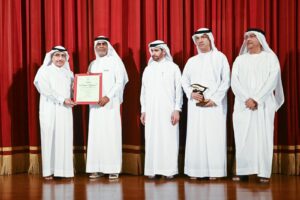 الشيخ سعيد بن صقر بن سلطان القاسمي و الشيخ هيثم بن صقر بن سلطان القاسمي يكرمان يوسف الكعبي يرافقهما عبدالله العويس وأحمد بورحيمة
