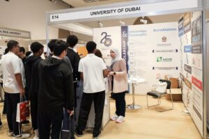 شهد جناح جامعة دبي إقبالًا كبيرًا من الطلبة والزوار و تضمن تقديم عروض تعريفية من إدارة القبول والتسجيل، بهدف إرشاد الطلبة وتعريفهم ببرامج كليات الجامعة ونظام الدراسة والبنية الأكاديمية والتكنولوجية ومتطلبات القبول في مراحل البكالوريوس في الهندسة وتقنية المعلومات وفي إدارة الأعمال، والماجستير في إدارة الأعمال وفي علوم البيانات وفي القانون، والدكتوراه في إدارة الأعمال إضافة للتعريف بالمنح الدراسية الجزئية التي تصل إلى 50% والكاملة التي توفرها الجامعة، كما تم تعريف الطلبة والزوار بالبرامج الجديدة التي طرحتها الجامعة اعتبارا من سبتمبر 2024، وتشمل 6 برامج جديدة لمرحلتي البكالوريوس والماجستير والتي تتضمن استحداث 3 درجات في مرحلة البكالوريوس في مجال القانون وهندسة الحاسوب والذكاء الإصطناعي، و 3 درجات جديدة في مرحلة الماجستير تشمل العلوم في الأمن السيبراني والعلوم في الهندسة الكهربائية وإدارة الأعمال في تخصصات “التسويق الرقمي، إدارة التكنولوجيا المالية، إدارة الإمداد العالمي والإدارة الإستراتيجية لرأس المال البشري”.