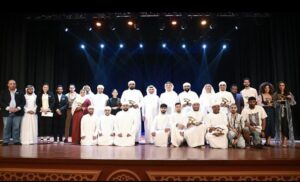 وبعدما قرأت د. لمياء أنور تقرير وتوصيات اللجنة المحكمة، دُع مقدم الحفل إلى المنصة الشيخ هيثم بن صقر القاسمي، وعبدالله العويس، وأحمد بورحيمة، وإبراهيم سالم المشرف الفني على دورة عناصر العرض المسرحي، لتكريم الفائزين بجوائز الدورة الحادية عشرة من المهرجان، التي شهدت تقديم 12 عرضًا، بواقع ثلاثة عروض في اليوم، خلال الفترة من 27 سبتمبر إلى الأول من أـكتوبر 2024.