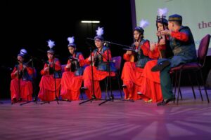 و بعد أن شكر بلال البدور قنصل كازاخستان والجالية الكازاخية على حرصها على المشاركة في يوم الاتحاد، بدآ الحفل بتقديم النشيد الوطني للإمارات وكازاخستان – أداء فرقة “دومبرا“باستخدام آلة الدومبرا، ما يبرز وحدة الثقافتين من خلال هذا الأداء الفريد.