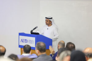 وألقى السيد علي الخاجة، المدير التنفيذي للذكاء الاصطناعي في مؤسسة حكومة دبي الرقمية, وخريج الجامعة الأمريكية في دبي (دفعة 2008) كلمة رئيسية تناولت ملاحظاته الدور المتطور للذكاء الاصطناعي وإمكاناته التحويلية في مختلف القطاعات. وعلق قائلًا: “عندما بدأت في استكشاف الذكاء الاصطناعي، لم أتخيل أبدًا مدى السرعة التي سيُحدث بها تحولًا في الصناعات. وبصفتي المدير التنفيذي للذكاء الاصطناعي في مؤسسة حكومة دبي الرقمية، فقد شهدت تأثيره العميق بشكل مباشر. لا تكمن القوة الحقيقية للذكاء الاصطناعي في التكنولوجيا نفسها فحسب، بل في الأشخاص الذين يبتكرون ويطبقونها من أجل المصلحة العامة. هذا البرنامج ضروري لأنه يُمكّن الطلاب والمعلمين والمجتمع من تسخير الذكاء الاصطناعي لتحقيق تقدم هادف وتأثير إيجابي”.