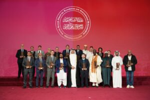 وشهد الحفل كلمة ألقاها الأمين العام للجائزة د.حسن النعمة، قال فيها إن الجائزة “تساهم في تعزيز قيم إنسانية حضارة وأدباً وعلماً وفناً، اقتداء بأسلافنا الذي أسهموا في بناء هذه الحضارة وسطروا لنا في أسفار تاريخها أمجاداً ما زلنا نحن الأبناء نحتفل بل ونتيه مفتخرين بذلك الإسهام الحضاري العربي في التراث الإنساني العالمي،”