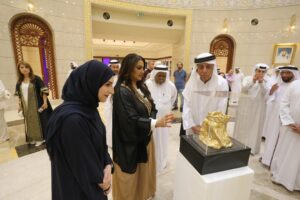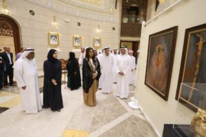 بلال البدور أشاد بالتعاون الفني بين الإمارات والبحرين وسط احتفالات المملكة بعيدها الوطني ورمزية اللوحات المعروضة، والتي تعكس تاريخ البحرين العريق وتراثها وأصالة حكامها، وعقب الافتتاح تم تبادل الهدايا التذكارية.
