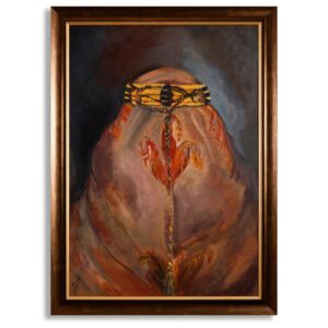 صيغة ولباس لها تاريخ وحكاية منحوت على لوحات الفنانة، و ضمن لوحات المعرض لوحات بالحفر فيها السيوف والخناجر و”الشطف”، وأيضًا من بين اللوحات منحوتة من الذهب تجسد “الشطفة”.