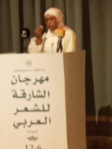أنشدت فاطمة مفتاح “قبضةٌ من رمل” التي جسّدت معاناة إنسانية عميقة بأسلوب رمزي مميز، ومن أبياتها: