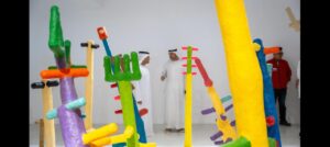 يتم الآن تنسيق العمل الفني التركيبي بشكل مباشر على مستوى النظر في أرضية المعرض ليتيح للزوار تجربة مميزة من خلال التجول حولها بجولة دائرية كاشفة  ألوان التركيب الفني  وإيقاعه، مما يسمح بوجهات نظر مختلفة عبر من خلال غابة من المنحوتات المتجاورة  بالقرب من بعضها البعض كما لو انها استعادة للطبيعية بصورة فنية فتظهر الأشكال  مثل الشجر وهي تنحني و ترتفع كما لو أن الريح استحوذت عليها ، لنرى ذلك جلياً في طيف الألوان على المجسمات النحتية بدءا من النغمات اللونية الساطعة بشكل تعبيري إلى الألوان الصامتة ، وينتهي بها الأمر بمجموعة من الألوان بالأبيض والأسود.