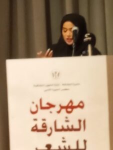وأنشدت الشاعرة مريم فلامرزي مجموعة من قصائدها الرقيقة بأسلوبها زالواثقة بقوة لغتها الشعرية ، ومن ذلك قصيدتها “دار المفخرة”، التي عبرت فيها عن فخرها واعتزازها بدولة الإمارات وة بتاريخها العريق ونهضتها الثقافية والحضارية: