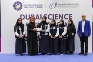 كرم سعادة د.عيسى البستكي رئيس جامعة دبي، الفرَق الفائزة في معرض دبي الثالث للعلوم والهندسة، الذي نظمته جامعة دبي يومي 4 و 5 فبراير 2025 تزامنًا مع شهر الابتكار “الإمارات تبتكر”، وشارك في المعرض أكثر من 150 طالبًا وطالبة من مدارس جميع أنحاء الدولة تشجيعًا لهم على الابتكار والمشاركة في المعارض العلمية، كما كرم سعادته الفريق الفائز في مسابقة “أفضل مشروع هندسي”، خلال الحفل الذي استضافته الجامعة بمقرها في المدينة الأكاديمية، وتم خلاله تقديم جوائز مالية قيمتها الإجمالية 22 ألف درهم.