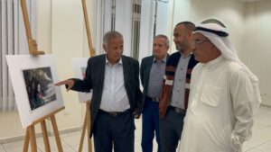 د. عمر عبدالعزيز يفتتح المعرض يرافقه علي المغني و خليفة الشيمي