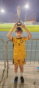 أنس نسيم دلول كابتن فريق “جولدن تايجرز”– تحت 11 سنة أبطال دوري كرة القدم DOFA يتلقى تهاني والده ووالدته وشقيقه مالك وشقيقتيه جود ووئام وأبناء خاله تامر الجشي وزوجته: محمد ويوسف وآدم ونايا وأبناء خاله وسام الجشي وزوجته: عبدالرحمن وعمر ووائل وريما، كما يتلقى التهاني من أعمامه فهد و عيسى ووسام ووسيم وعمته وئام ومن جميع أقاربه و أصدقائه. تهنئة خاصة من جده وائل الجشي وزوجته وجده رزق دلول وزوجته، وذلك بمناسبة تتويجه ببطولة الدَّوْري لفوز فريقه على فريقFC BARCALONA في مباراة على ملعب I s d في دبي.