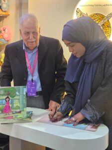 وقَّعت الكاتبة الإماراتية صالحة فرج العليلي الإثنين 28 إبريل 2025 قصتها للأطفال “أمي ملجئي” الصادرة عن “دار شاهين للطباعة والنشر والتوزيع “مرفقة برسمات تعبيرية بريشة فادي أبونصر وننسيق مايا شعبان، والتدقيق اللغوي: ليلاس نصر شاهين، حيث اجتمع تلاميذ وتلميذات من “روضة الأثير” – رأس الخيمة في جناح “دار شاهين” المشاركة في مهرجان “الشارقة القرائي للطفل” – (16) لمحادثة الكاتبة والتقاط صورة معها.